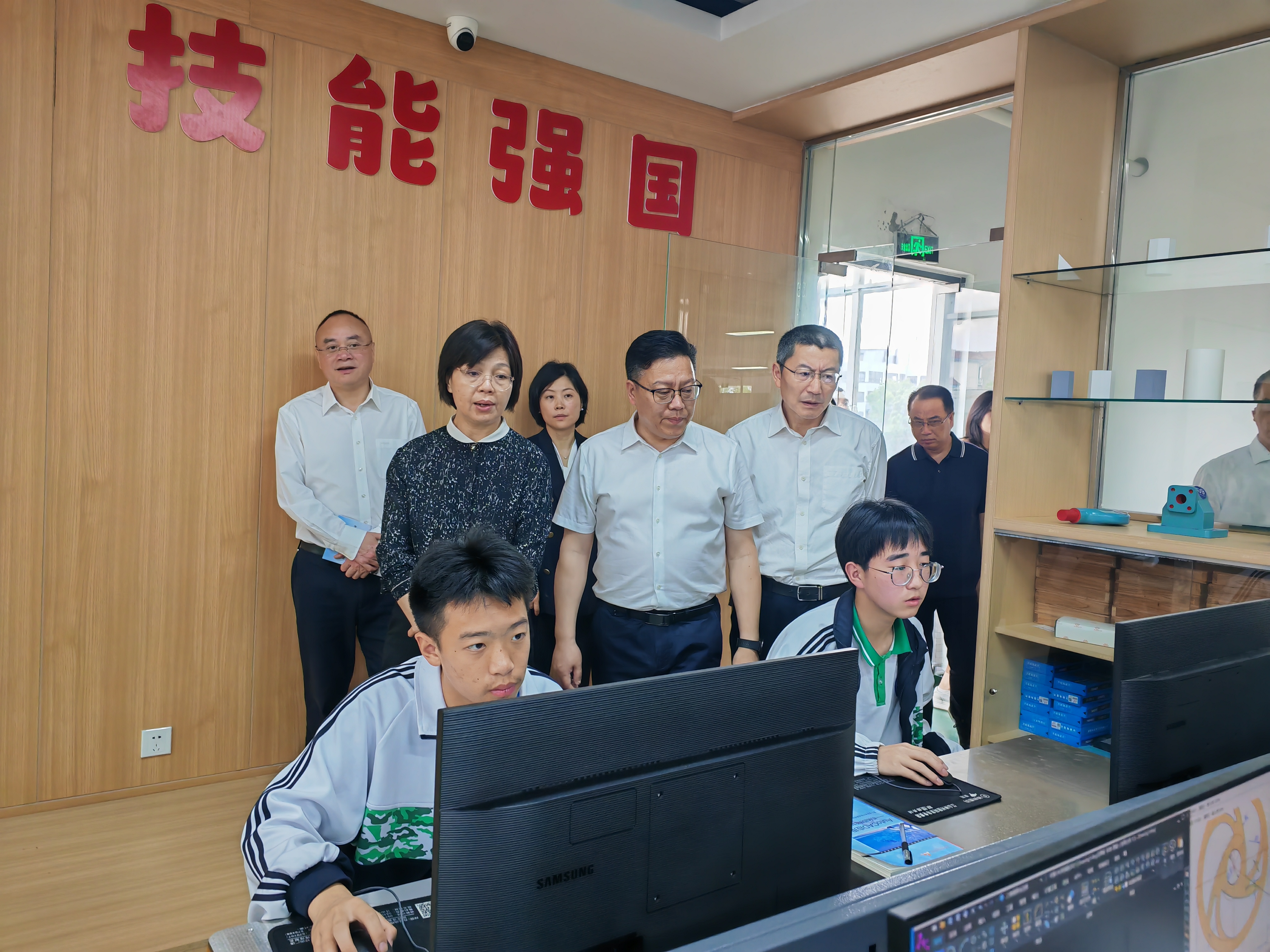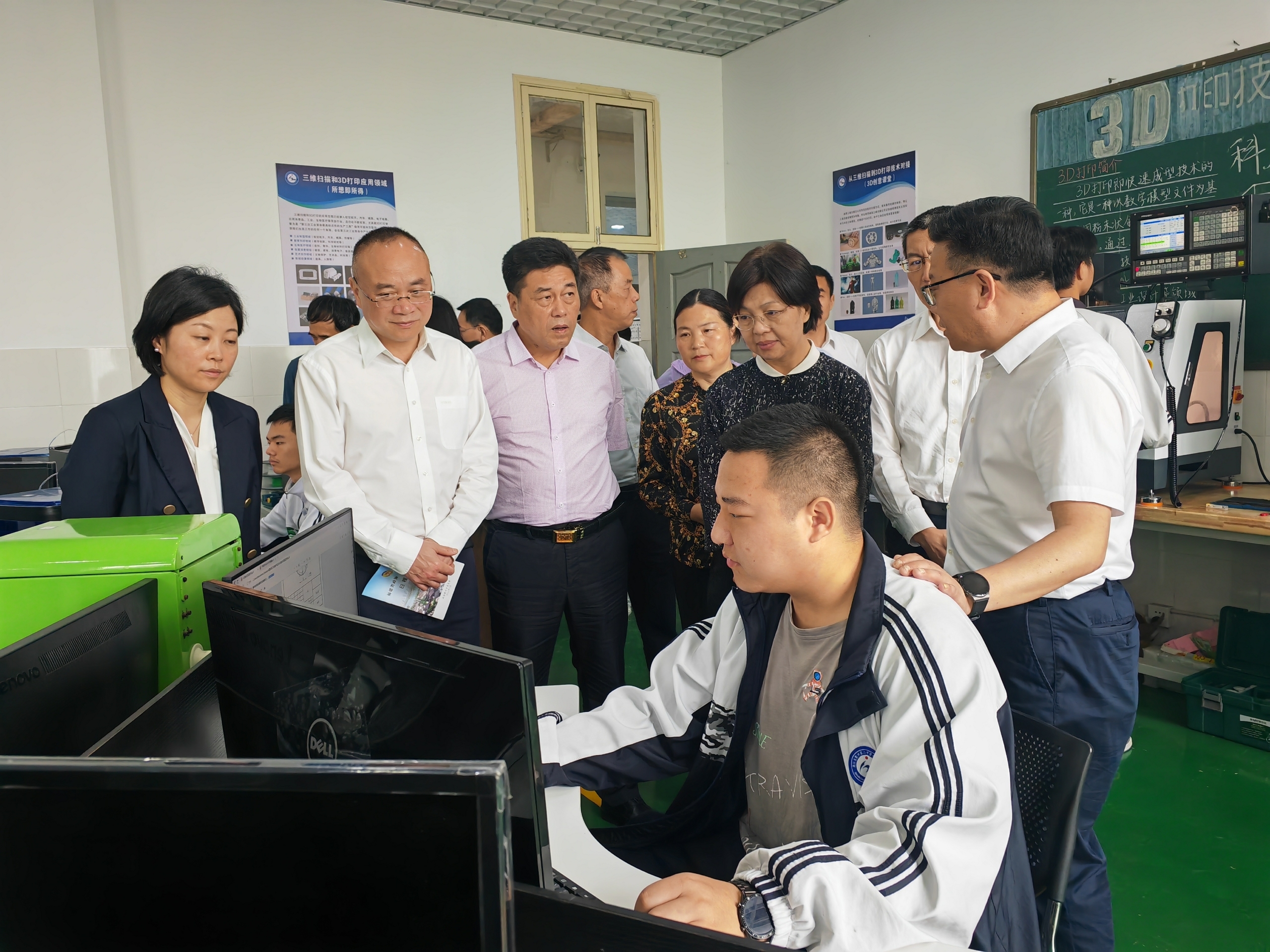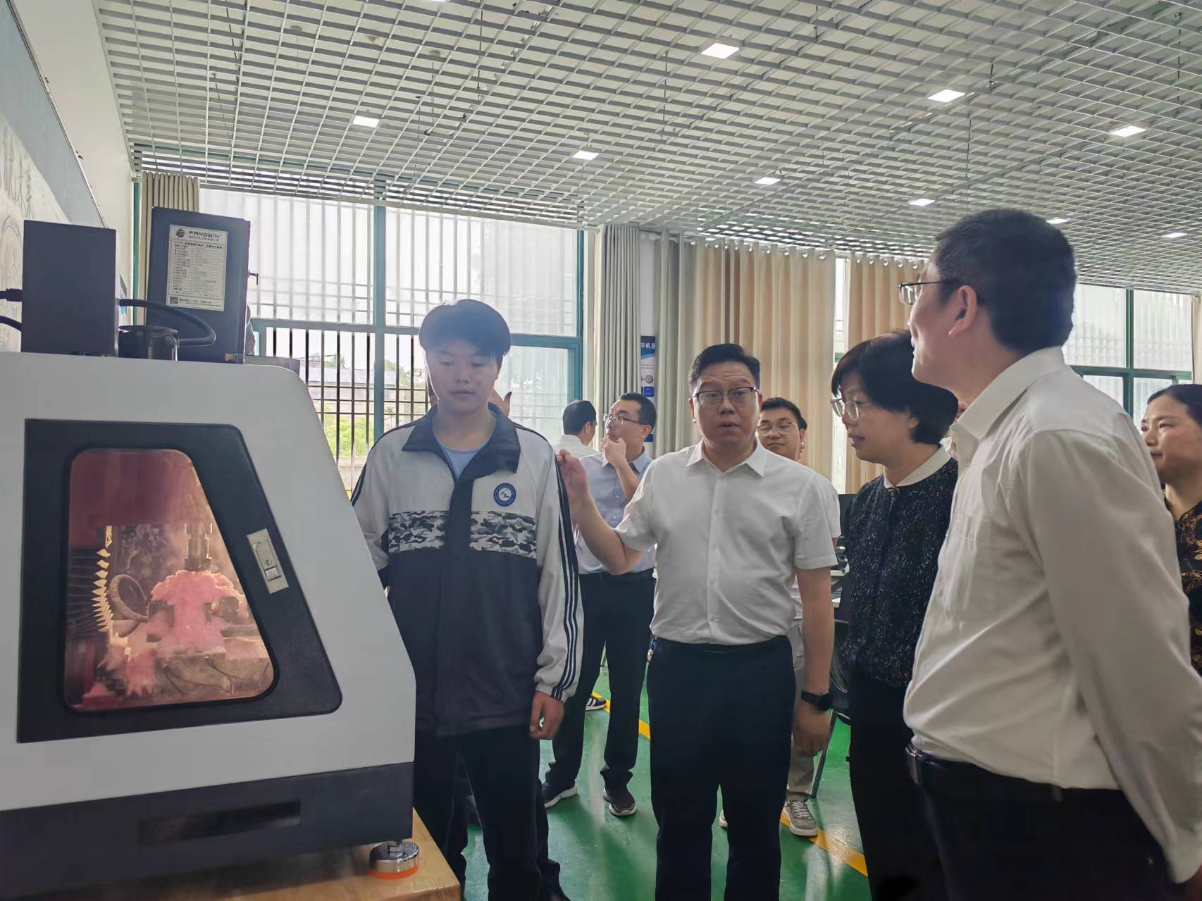 黃玲一行先后參觀了學校的3D打印、工業機器人、電商直播、家具設計、零部件測繪等實訓室。參觀過程中,校長徐凌志介紹了學校在校企合作、產教融合等方面的人才培養工作情況,特別是學校在政校行企協同育人模式上的創新與實踐。