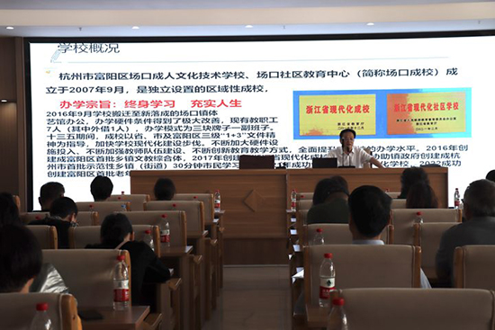 在杭州市民生優秀項目實地常安鎮老年學校,聽取了孫東校長題為《助力老年美好生活,打造鄉鎮老年學校建設的“常安模式”》的匯報,從創建前期工作、創建具體舉措、創建推進特色三方面分享老年學校建設的實踐經驗。詳實的資料、精確的數據、富有地域性工作亮點贏得大家的贊賞。