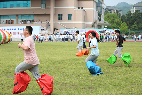 本屆運(yùn)動(dòng)會(huì)比賽項(xiàng)目精彩紛呈、趣味無(wú)窮,吸引眾多師生熱情參與。其中,學(xué)生比賽中設(shè)置了“嗷嗷指壓板”“鐵甲戰(zhàn)車(chē)”“大腳板”“穿衣接力”“兩人三組”“摸石過(guò)河”等24個(gè)項(xiàng)目。教職工比賽有“袋鼠接力”“一錘定音”“連體戰(zhàn)士”“動(dòng)感五環(huán)”四項(xiàng)比賽。賽場(chǎng)上,同學(xué)們激情飛揚(yáng),奮勇拼搏,展現(xiàn)著青春的速度與力量;老師們拼搏進(jìn)發(fā),不甘落后,展現(xiàn)著田徑的英姿與豪邁。整個(gè)運(yùn)動(dòng)會(huì)活潑歡快,和諧有序,運(yùn)動(dòng)員們團(tuán)結(jié)協(xié)作,勇創(chuàng)佳績(jī)。趣味中的運(yùn)動(dòng),快樂(lè)中的競(jìng)爭(zhēng),不僅給校園增添了青春的動(dòng)感與活力,更緩解了學(xué)生們學(xué)習(xí)的壓力與緊張情緒。