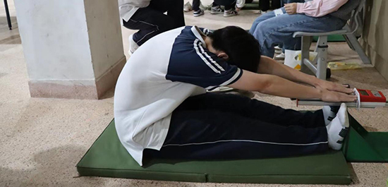 雙腿伸直,雙手努力向前伸展,盡可能觸碰腳尖,每一次伸展都是對自我極限的挑戰。