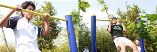 在引體向上比賽中,男生們展示了他們的力量和耐力。他們一次又一次地拉起自己的身體,每一次上升都凝聚著汗水和堅持。