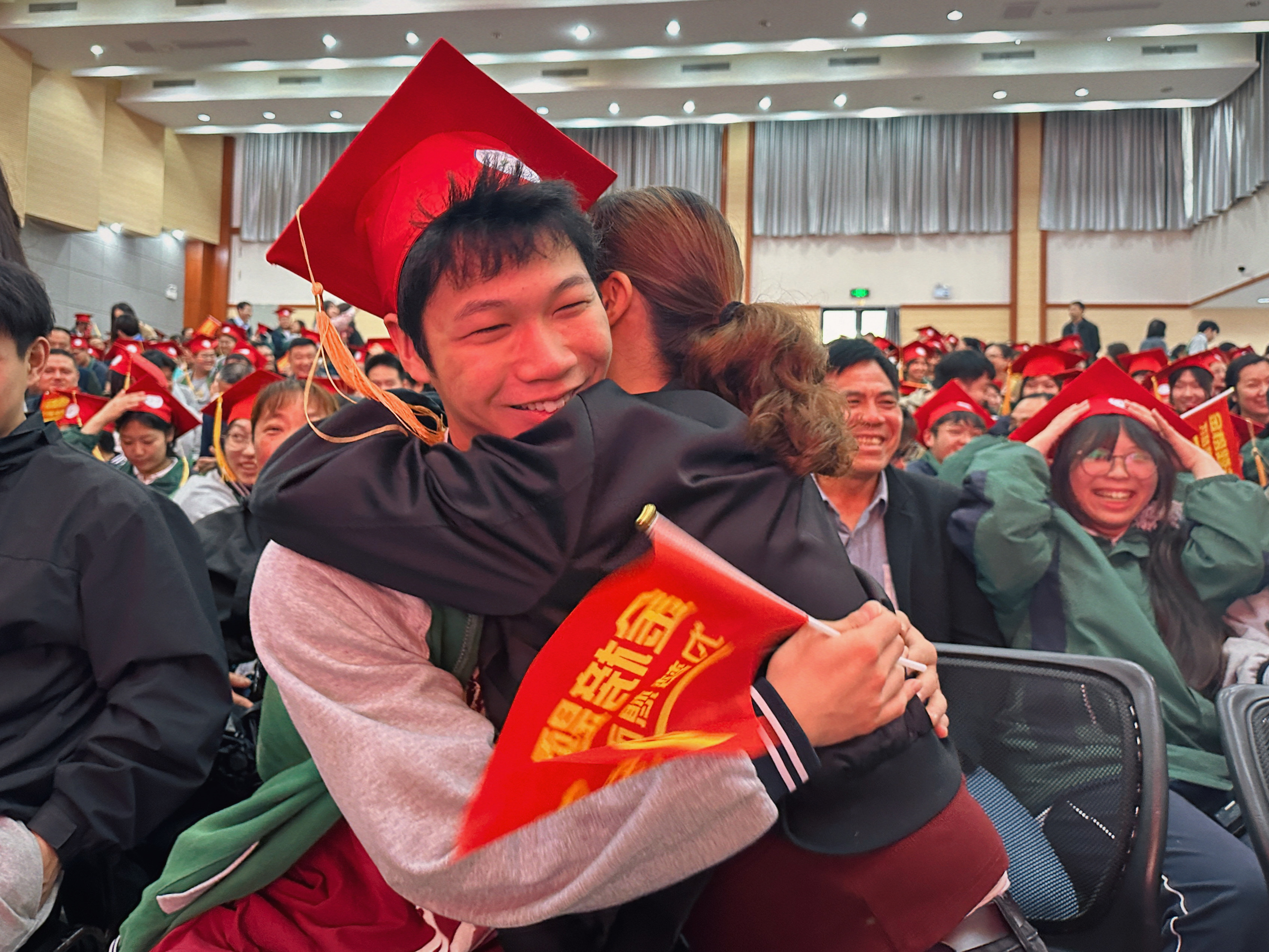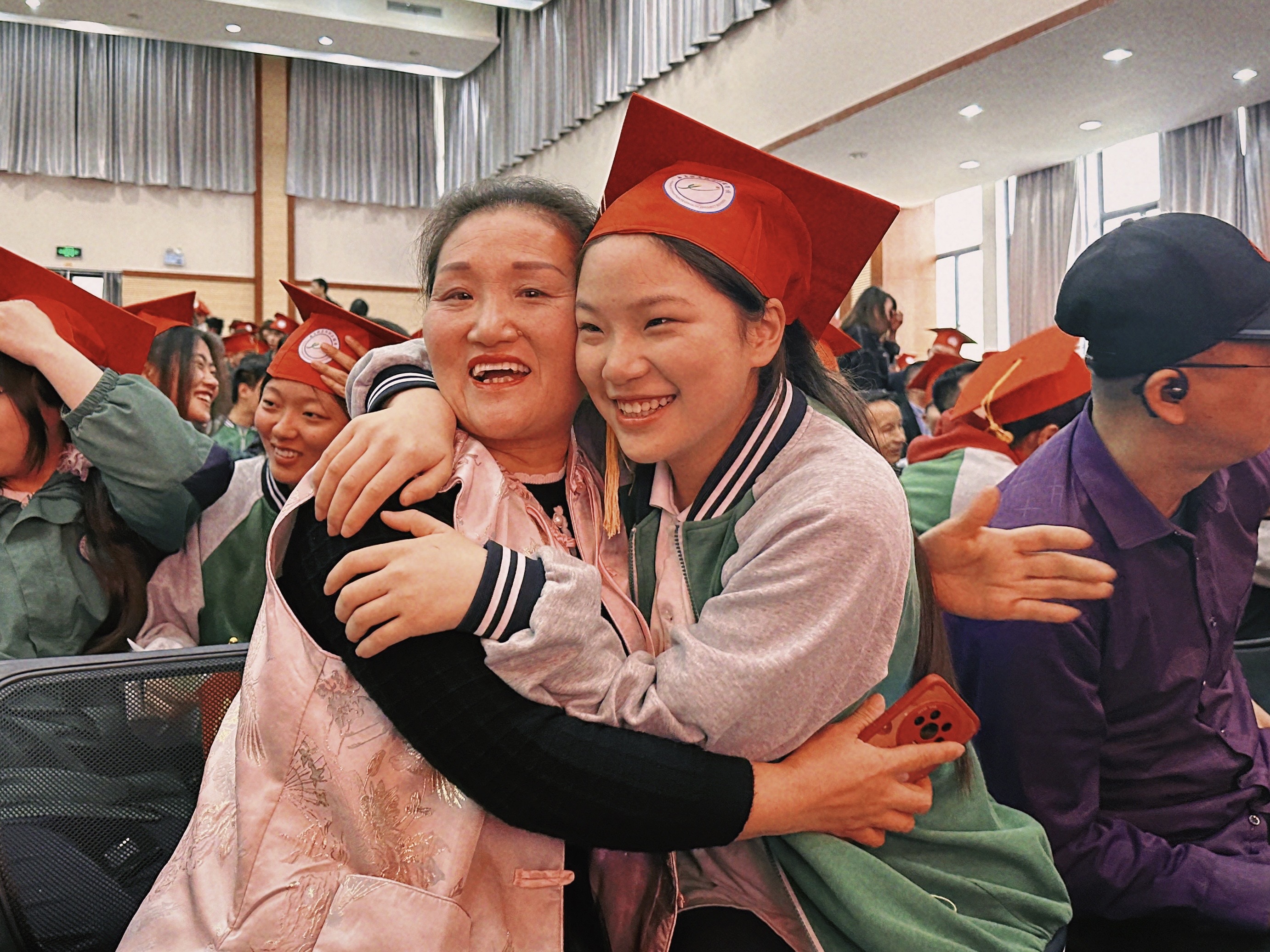 帶上成人帽,就要負擔起成年人的責任與使命;手中握《憲法》,將享有憲法賦予成年公民的合法權利,履行憲法規定的責任和義務。成長與感恩同行,同學們深情地擁抱身邊的親人,并感謝他們的養育之恩!一聲聲“謝謝”“我愛你”,一個個溫暖有力的擁抱,讓在場的所有人都為之動容。相信,這個擁抱將是他們人生路上奔向下一個征程的動力。