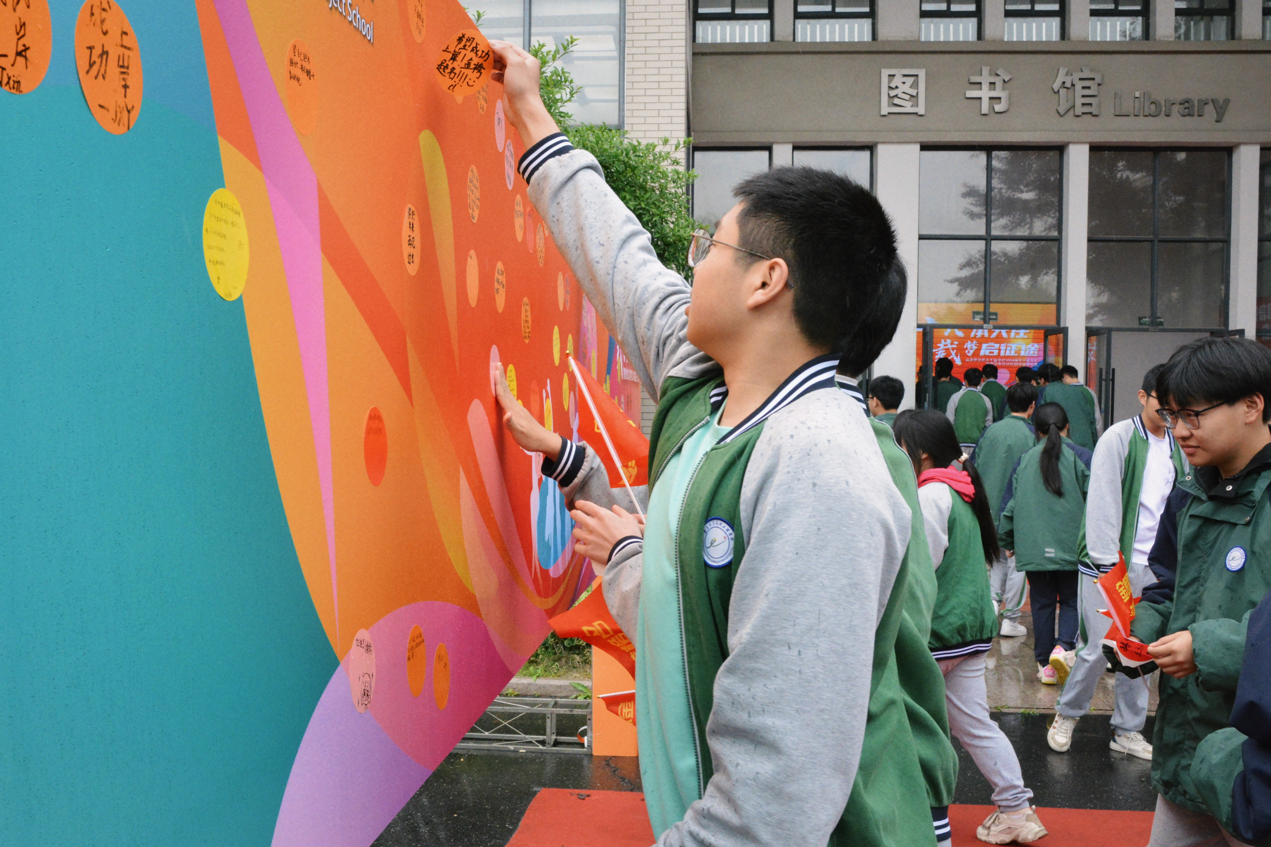上午9時,伴隨著熱情洋溢的音樂,同學們寫下青春的愿望和對未來的美好希冀,跨過成人門,將心愿紙貼在留言墻上,懷著激動的心情步入會場。