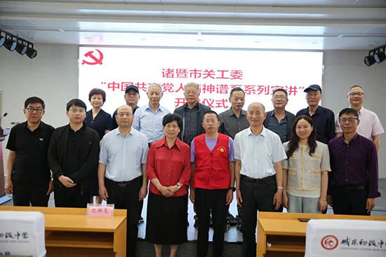 紹興市關(guān)工委副主任竺洪亮,諸暨市關(guān)工委主任周雪芬、專(zhuān)職副主任應(yīng)仲九,教體局、關(guān)工委相關(guān)科室負(fù)責(zé)人參加儀式,并為七年級(jí)12個(gè)班級(jí)贈(zèng)送中國(guó)共產(chǎn)黨人精神譜系系列宣講書(shū)籍。