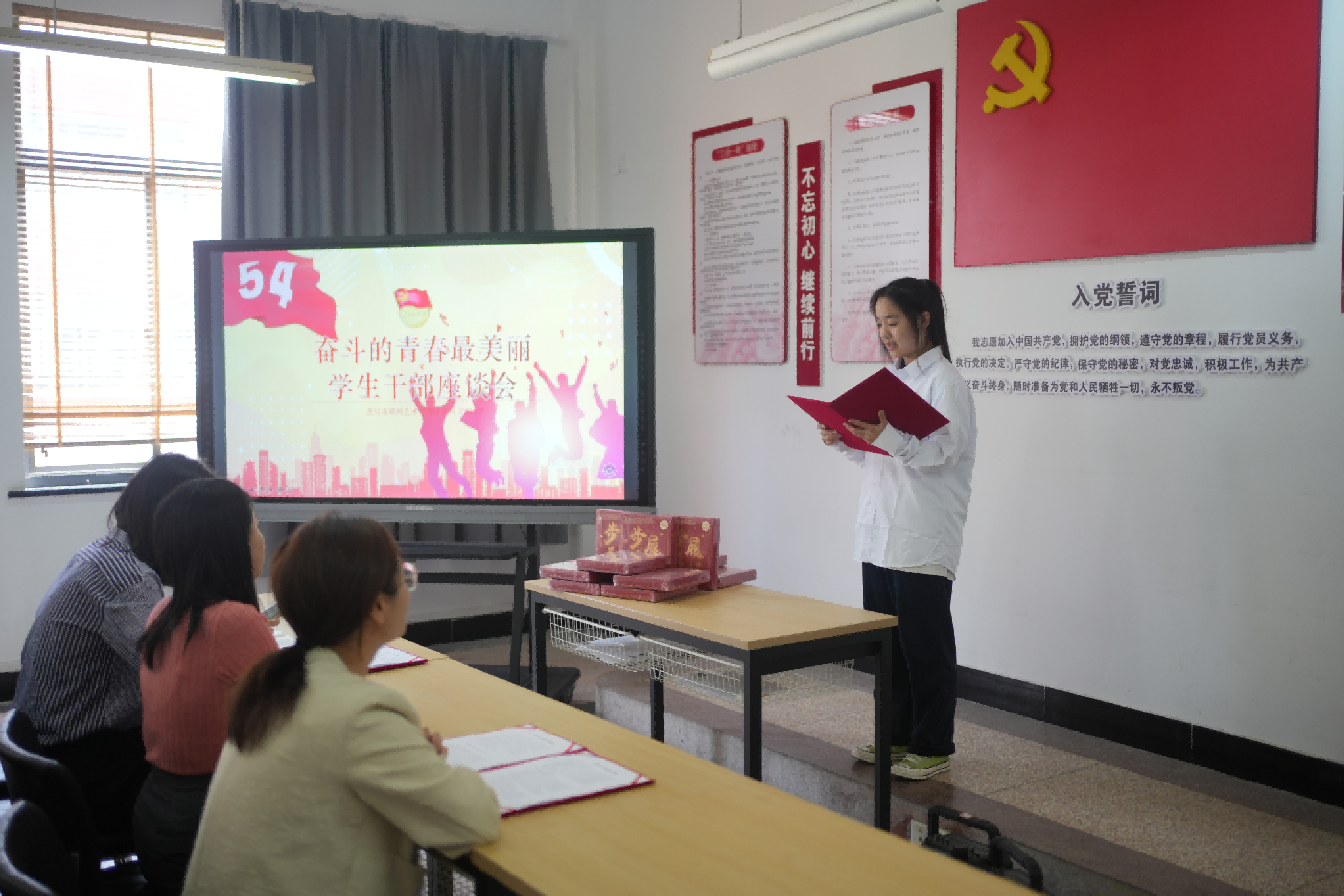 為深入學習宣傳貫徹黨的二十大精神,進一步落實立德樹人根本目標,加強學生干部隊伍建設,培養學生干部的責任與擔當意識,5月8日中午,浙江省湖州藝術與設計學校學生處聯合校團委在教學樓4102黨員活動室召開以“奮斗的青春最美麗”為主題的學生干部座談會。藝校副校長司曉妹、學生處處長費曉旦、團委書記王津以及學生會主要學生干部參加會議,會議由王津主持。