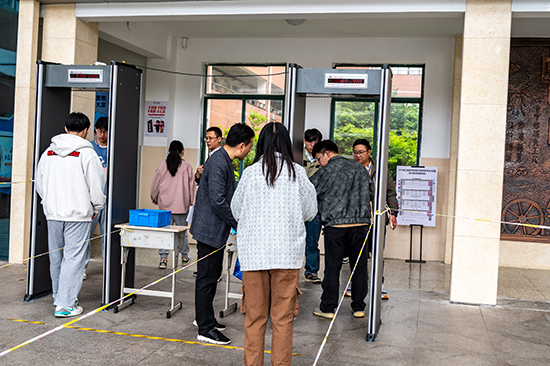 學校注重現場組織到位,不讓管理有“短板”。考試期間嚴格實行“封閉式”管理,專人把控各測試場地入口,非工作人員不得進出考區。同時加強引導助力有序測試,全過程嚴格按照要求進行,全力確保有序。