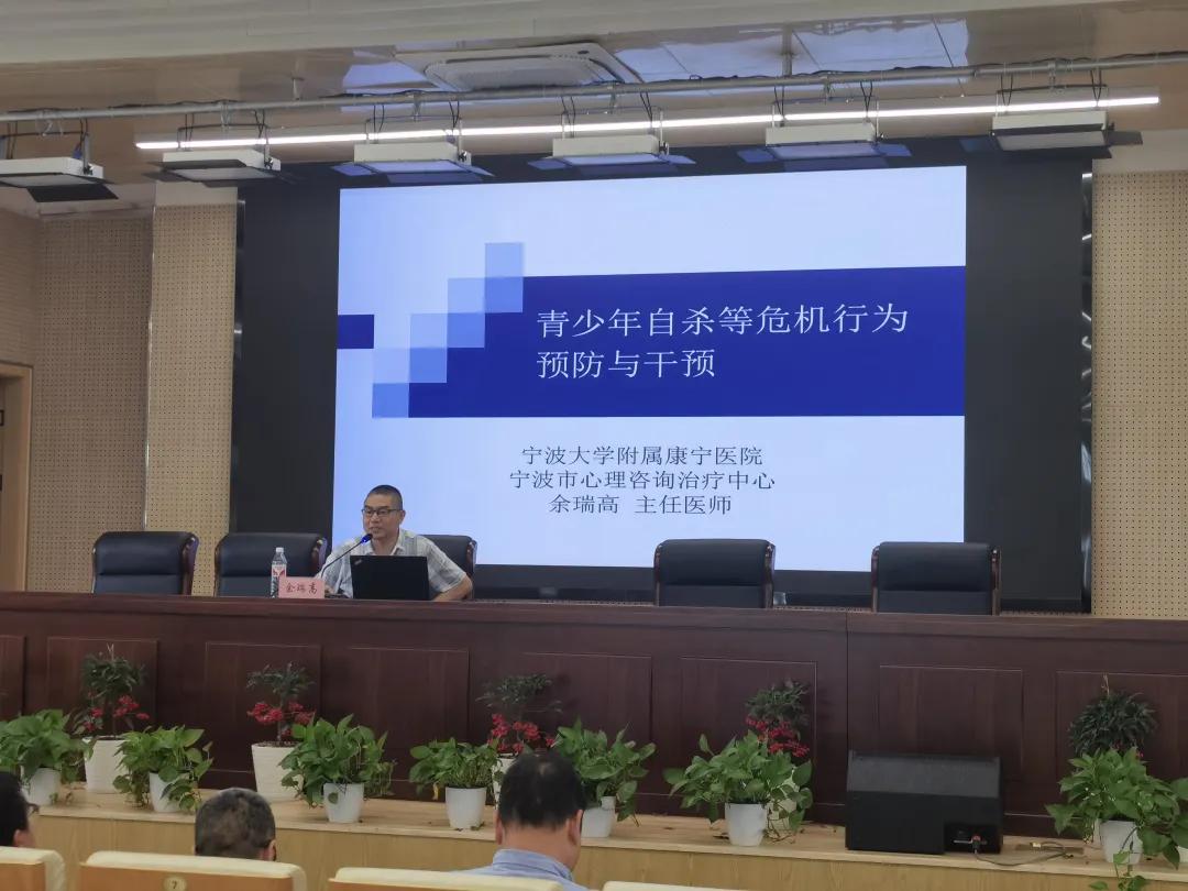 為進(jìn)一步落實(shí)全員“心導(dǎo)師”制度,全面提升學(xué)校心理健康教育水平,幫助教師們更好地識(shí)別和應(yīng)對(duì)學(xué)生心理危機(jī),5月11日,寧波市古林職業(yè)高級(jí)中學(xué)特邀寧波大學(xué)附屬康寧醫(yī)院余瑞高主任醫(yī)師為全體教師開(kāi)展關(guān)于“學(xué)生心理危機(jī)預(yù)防與干預(yù)”的心理健康培訓(xùn)講座。余醫(yī)生圍繞學(xué)生心理危機(jī)的現(xiàn)狀、影響因素、預(yù)防措施及應(yīng)對(duì)策略等方面進(jìn)行了詳細(xì)講解。