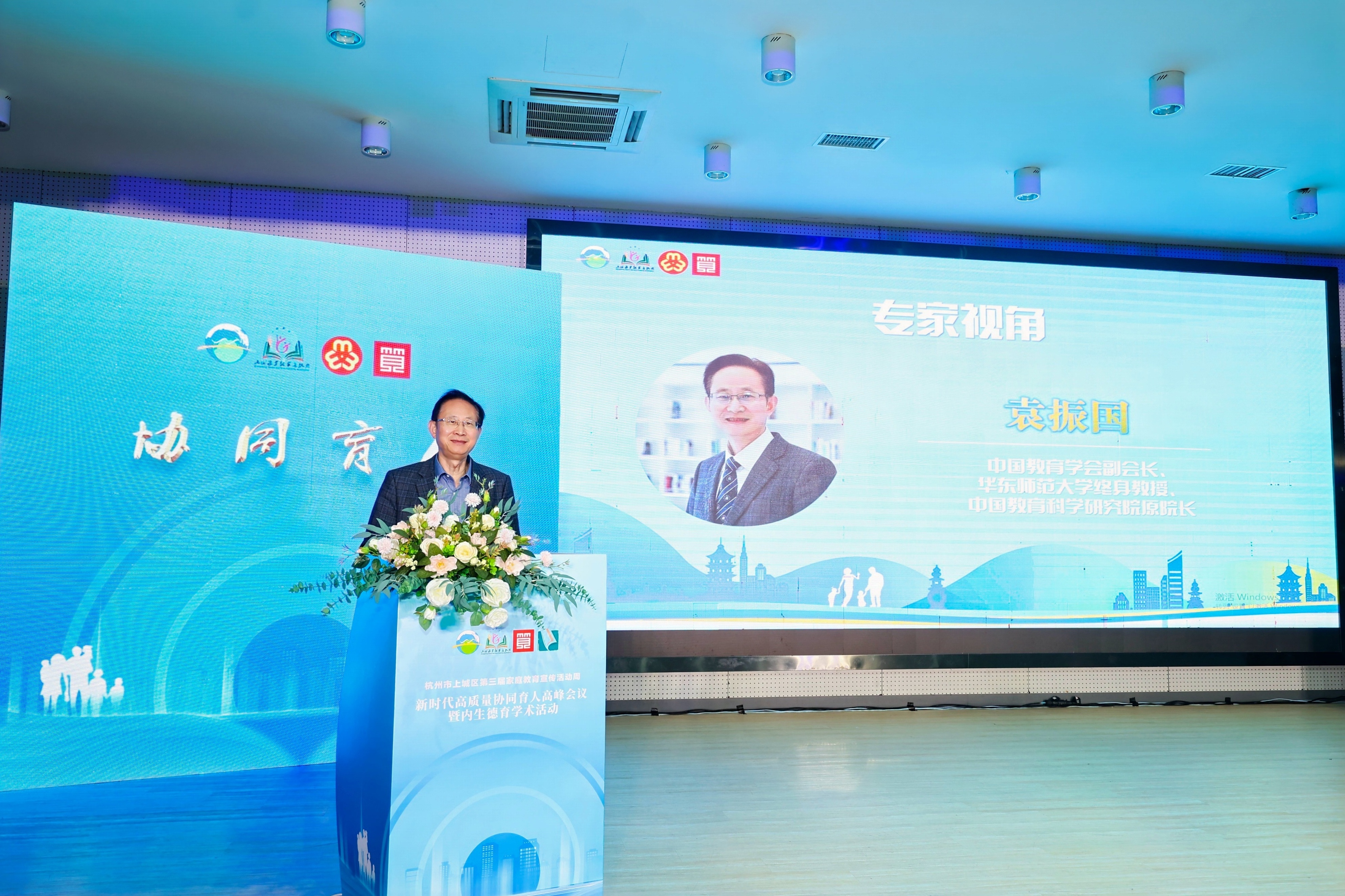 在專家視角環節,王世美副局長、邊玉芳教授、袁振國教授分別分享了新時代高質量協同育人的路徑選擇,從不同視角探尋凝聚校家社協同育人力量,打造上城協同育人新生態,促進孩子全面健康幸福成長。