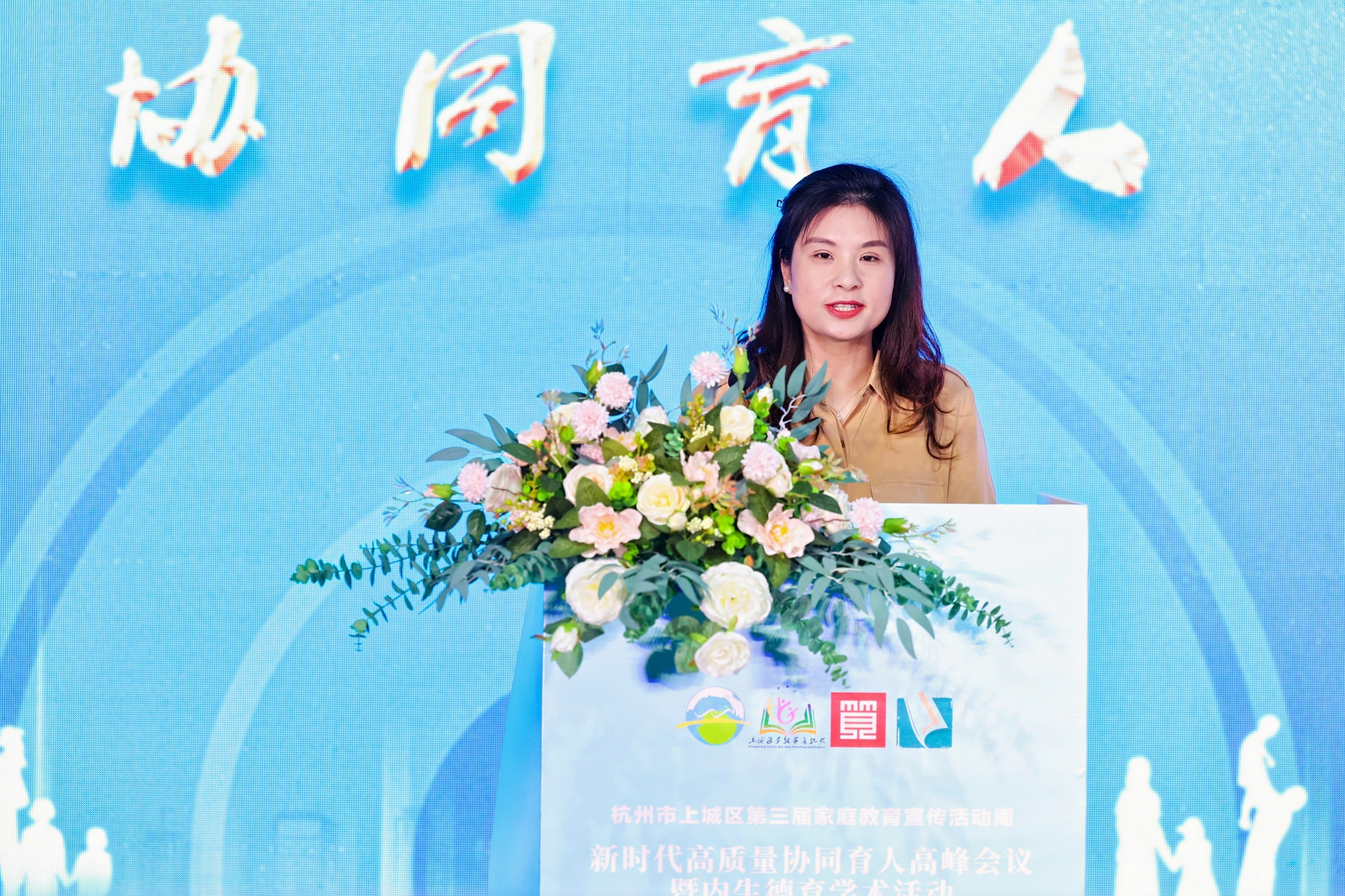 毛素云宣布上城區第三屆家庭教育宣傳周暨高質量協同育人高峰會議正式啟動,拉開第三屆家庭教育宣傳周系列活動序幕。