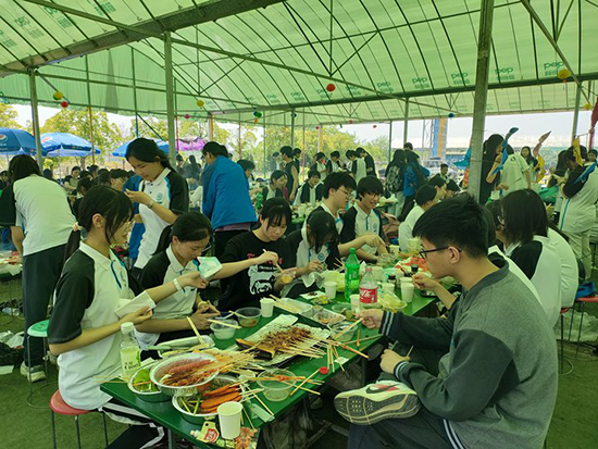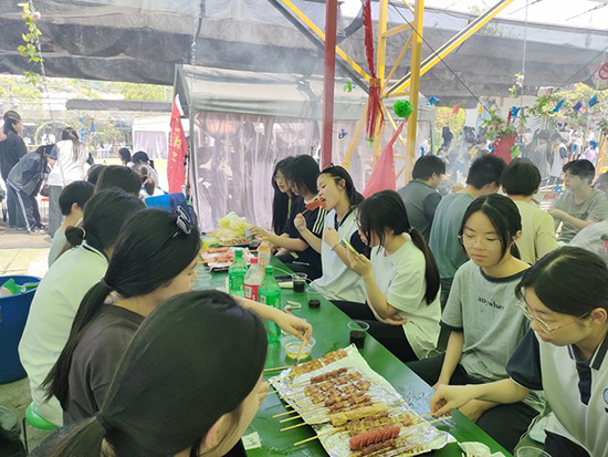 煙火氣息,串來串往。同學們一個個化身大廚,擼起袖子開始他們的燒烤之旅。拿取食材、掌握火候、來回翻動,刷上油、撒上調味粉、抹好醬料,享受美食、打掃現場,一系列勞作忙得不亦樂乎,但是掩蓋不住他們分享成果的歡欣雀躍。