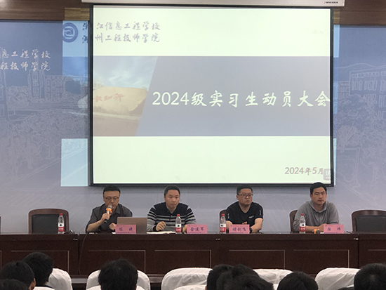 實習實踐是學生走出象牙塔、邁向社會的第一步,為了讓學生盡快調整心態,做好準備,走好、走實這一步,5月11日,浙江信息工程學校·湖州工程技師學院在藝體館報告廳召開2024年實習生動員大會。大會由招就處陳曉老師主持,與會領導有副校長褚劍飛,招就處處長金建軍,學生處副處長陸煒。實習班級班主任和全體實習指導老師出席會議。