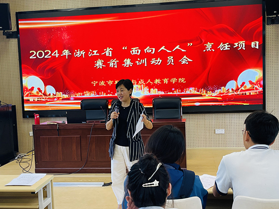 最后,寧波市職業(yè)與成人教育學(xué)院職教處李靜珠主任結(jié)合市職成院最新修訂獎(jiǎng)勵(lì)條例給全體集訓(xùn)師生做了動(dòng)員。李老師回顧了前面兩屆省級(jí)烹飪?nèi)巳速惖谝弧⒌诙妮x煌戰(zhàn)績(jī),從團(tuán)隊(duì)師資配備、精選集訓(xùn)場(chǎng)地、選手狀態(tài)等方面分析,鼓勵(lì)學(xué)生忘記選中時(shí)的ABC,從“新”出發(fā),開啟新的征程,爭(zhēng)取在省人人賽中發(fā)揮最優(yōu)的自己,為寧波代表隊(duì)爭(zhēng)取優(yōu)異的成績(jī)!
