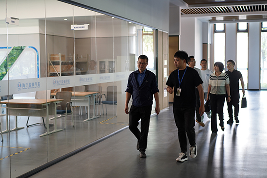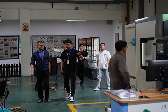 在學院黨委委員、副院長潘曉剛的陪同下,邵小文一行首先參觀了學校的實訓場地。場地配備了先進的電氣自動化設備和數控加工設備,為師生提供了優質的教學和學習環境。通過實地查看,邵小文一行深入了解了兩位老師在日常教學中的工作情況和學生的實訓成果,對海寧技師學院的教學實力給予了高度評價。