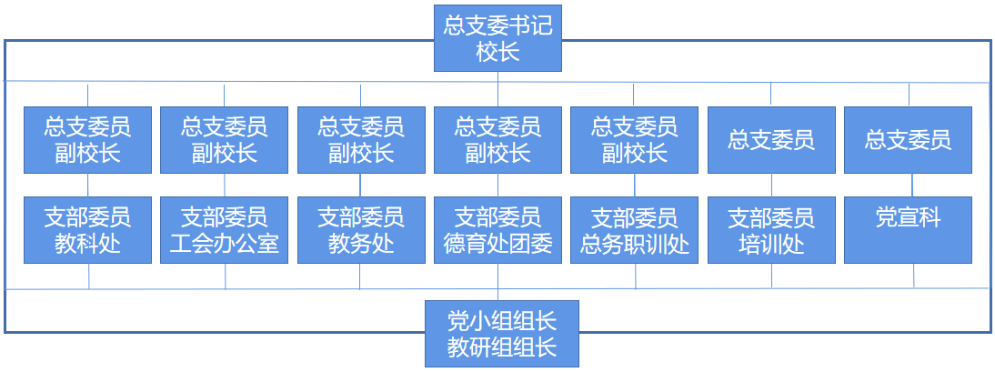 2、規范黨組織設置,將黨支部或黨小組建在專業組或學科組上,由黨員年級組長或學科組長擔任文化課和專業課各黨支部書記或黨小組組長。引導黨支部或黨小組敢于創新、主動作為,實現黨的領導和黨的工作全覆蓋,將黨組織全面從嚴治黨主體責任意實到學校的各項具體工作中。