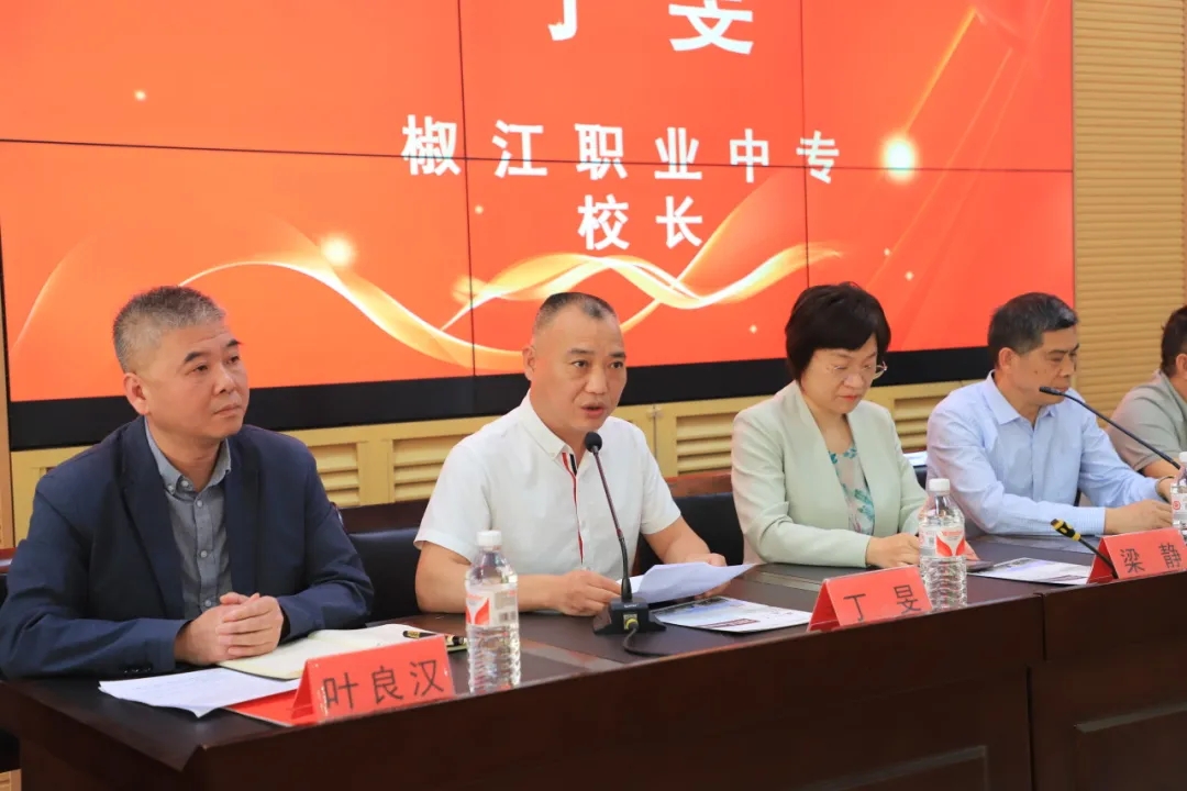 簽約儀式伊始,椒江職業中專校長丁旻致歡迎辭。丁校長代表學校,對各位領導嘉賓的蒞臨表示熱烈歡迎,對長期以來支持關心學校發展的各位領導表示衷心的感謝。他簡要介紹了學校的基本概況、辦學理念和特色亮點,并對本次合作提出三點希望:第一,要高度重視、合力推進;第二,要精心組織、提升質量;第三,要虛心學習,共同發展。此外,丁校長還勉勵同學們德技并修、學以致用,在社會創新發展的大潮中乘風破浪,大展宏圖。