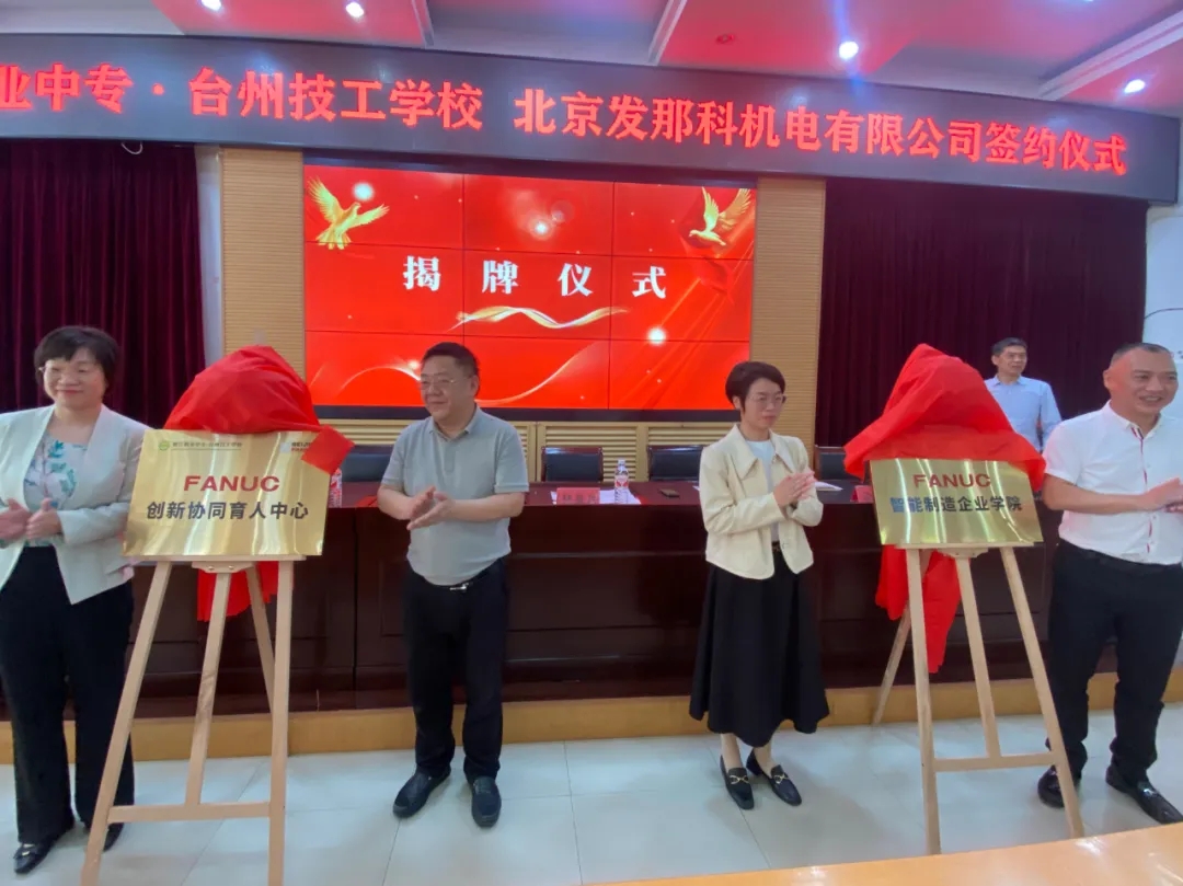 椒江職業中專校長丁旻和北京發那科機電有限公司F+學院院長梁靜共同簽署合作協議,并分別代表校企雙方揭牌,共建“FANUC智能制造企業學院”。未來,雙方將繼續深化合作,創新高素質技能人才培養模式,推動技術革新和產業升級,實現校企共建共享共贏。