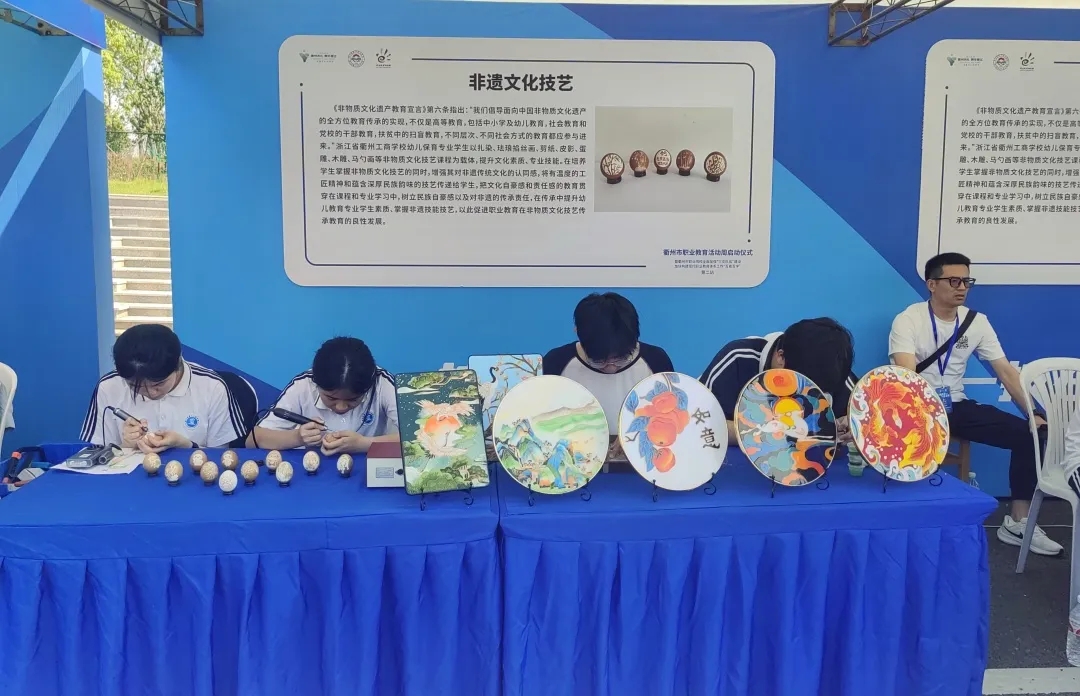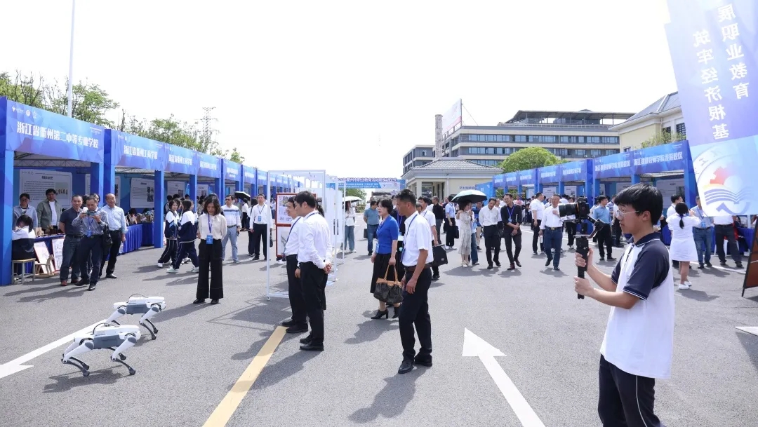 衢州理工學校金色廣場上,各參展單位通過展板、學生講解、技能展示等形式,呈現學校專業特色和教學成果,吸引眾多觀眾駐足觀看。