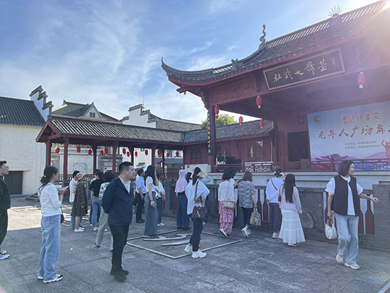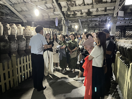 隨后,考察團(tuán)參觀了學(xué)校的校外教學(xué)實(shí)踐基地——古越龍山中央酒庫和安橋頭村“魯迅外婆家”景區(qū)。在古越龍山中央酒庫,考察團(tuán)成員聞著酒香,跟著講解員一道追溯紹興黃酒源遠(yuǎn)流長的歷史文化。他們?cè)谘b飾精美的花雕酒壇前流連,在一排排堆疊如山的陳年酒壇前打卡,欣喜之情溢于言表。在安橋頭村“魯迅外婆家”景區(qū),考察團(tuán)成員跟隨講解員先后參觀了祝福廣場(chǎng)、魯美動(dòng)漫基地、文化禮堂、朝北臺(tái)門等景點(diǎn),沉浸式感受著魯迅先生小時(shí)候在外婆家跟小伙伴們一起看社戲、釣河蝦、弶鳥雀、抓跳魚兒等有趣的童年生活。