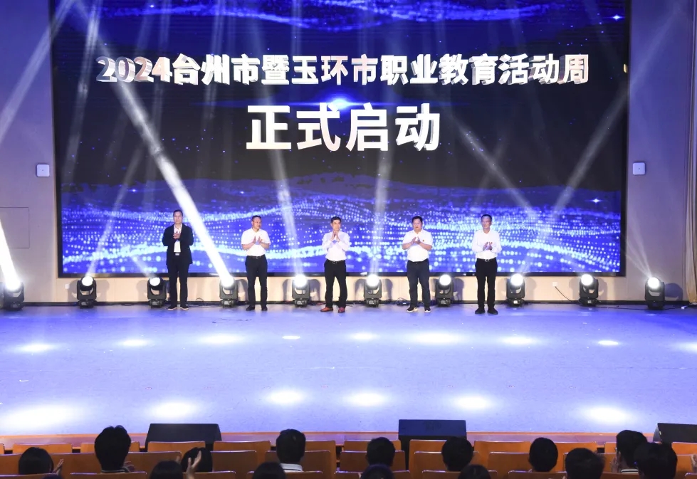 隨后,林鑒兵、林杭、魯才強(qiáng)、方宏亮、舒歡一齊按下啟動(dòng)柱,宣布2024年臺(tái)州市暨玉環(huán)市職業(yè)教育活動(dòng)周正式啟動(dòng)。