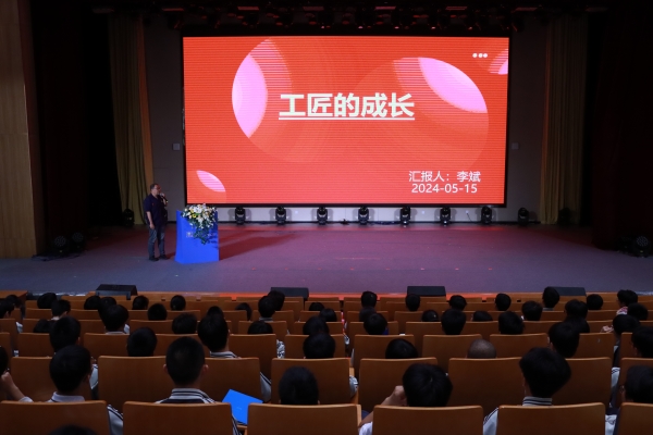 在隨后舉行的宣講活動(dòng)上,浙江工匠李斌結(jié)合自身成長(zhǎng),為同學(xué)們帶來(lái)精彩演講。