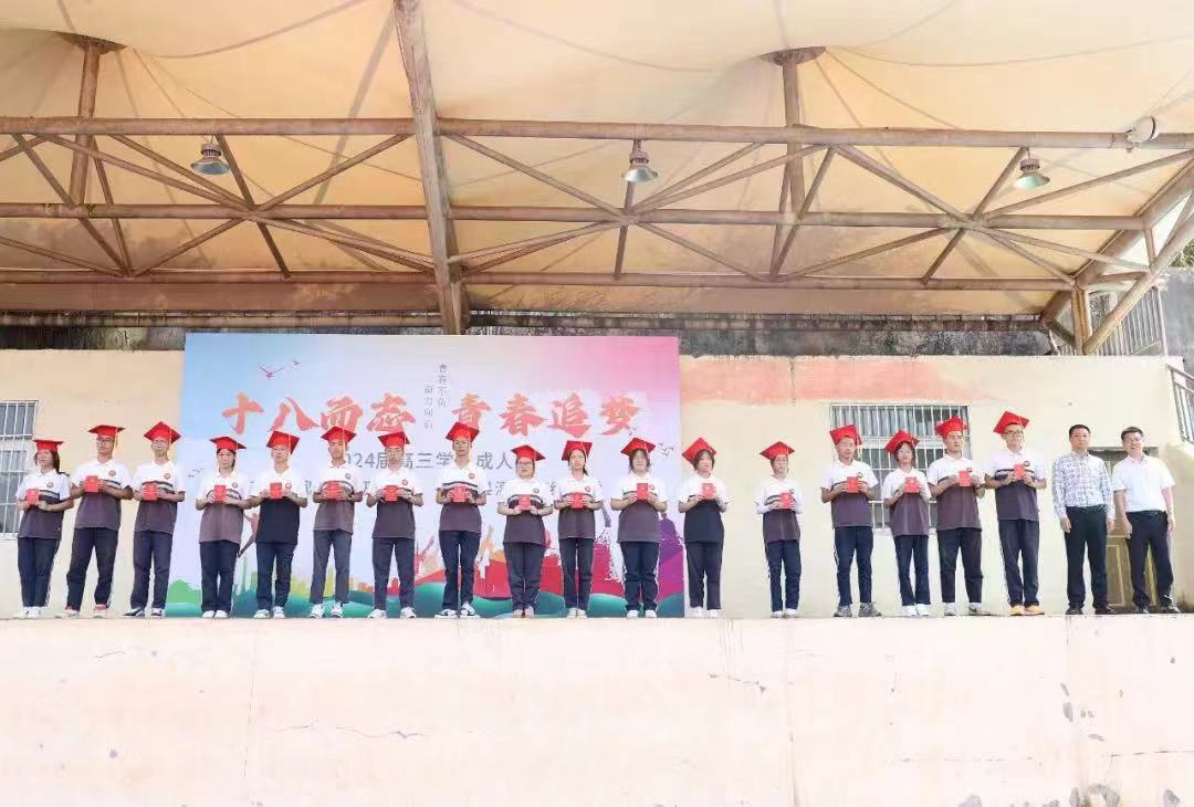 今日成人抒壯志,六月問鼎繪新章。5月18日下午,慶元縣職業(濛洲)高級中學2024屆高三學子成人禮儀式在學校操場隆重舉行。校黨總支書記范壽鵬、副校長張發等學校領導,全體高三師生及家長參與活動。