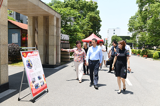 5月18日上午,金華市婺城區委書記高峰一行蒞臨金華實驗中學,在第十個職業教育活動周期間,深入感受職業教育的獨特魅力,并對婺城工匠學院的建設情況進行調研。參加調研的有婺城區委組織部部長陳絳,婺城區政協副主席、總工會主席舒理成,區總工會黨組書記、常務副主席朱菊香。婺城區教育局黨組成員、金華實驗中學黨總支書記俞秀玲全程參與調研。