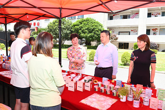 高峰書記一行首先參觀了學生技能成果展臺。高峰書記被學生們的精巧技藝和創意作品所吸引,駐足欣賞,并不時與老師、學生進行深入的交流,詢問作品的創作過程,對他們的技能表示了高度的贊賞。