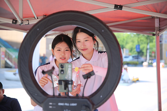 電商產品直播和新媒體現場直播為活動增添了現代氣息。學生們在直播中售賣產品,學習如何運用新媒體進行營銷和推廣;現場直播則由學生獨自操作,他們熟練地介紹活動現場的各個環節和展臺作品,展現了現代商業技能。這不僅鍛煉了他們的實踐能力,也讓他們了解了現代電商的運作方式。