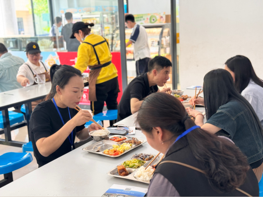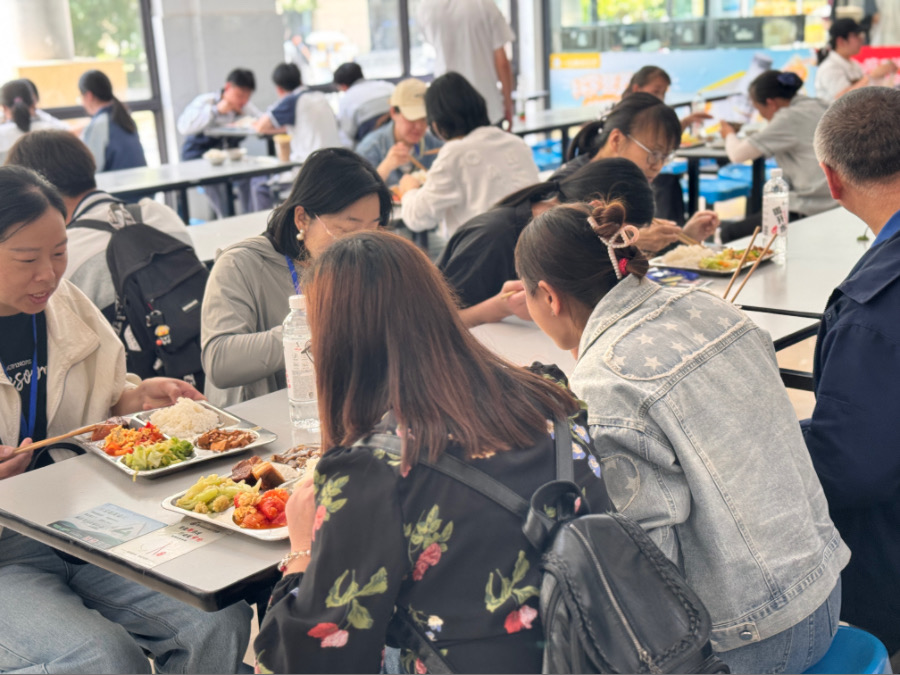 游覽過后,家長們受邀在學(xué)生食堂就餐,紛紛表示食堂的菜品口味豐富、營養(yǎng)均衡,同時他們也對食堂的衛(wèi)生狀況和嚴(yán)格的管理表示滿意。
