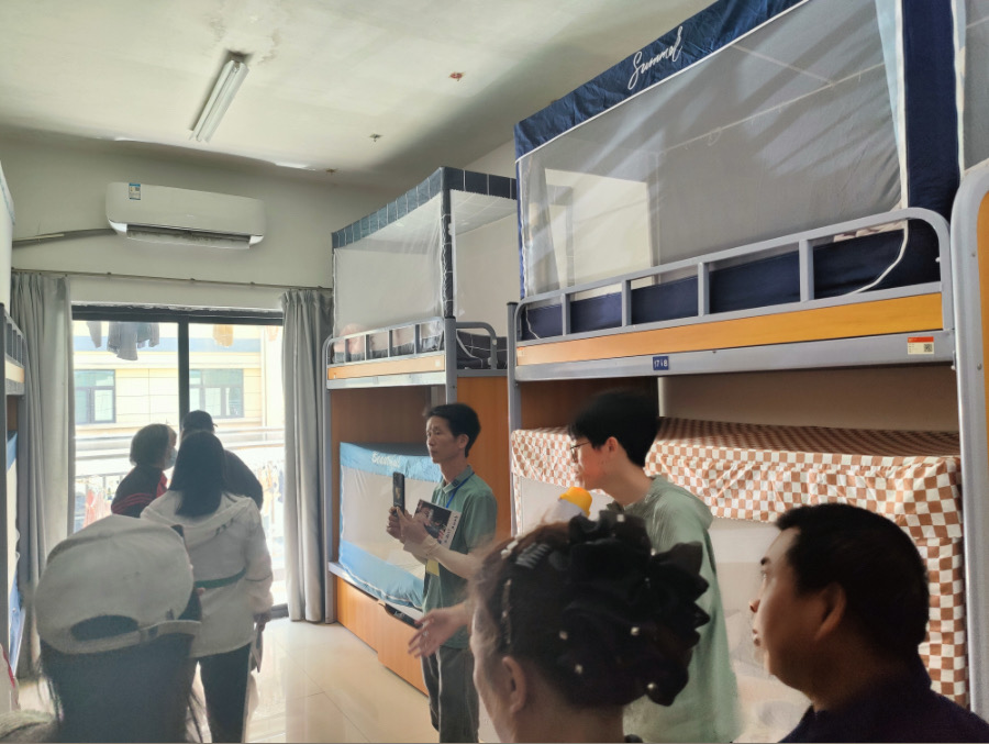 陳旭淋主任帶領(lǐng)家長們參觀了學(xué)生宿舍。宿舍區(qū)內(nèi)整潔的環(huán)境、完善的設(shè)施給家長們留下了深刻的印象。每間宿舍都配備了空調(diào)、獨立衛(wèi)生間等基礎(chǔ)設(shè)施設(shè)備,保證了學(xué)生們的基本生活需求。在參觀過程中,家長們紛紛表示對學(xué)生宿舍的滿意和放心。
