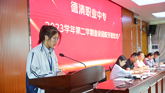 5月20日,德清職業(yè)中專舉行2023學(xué)年第二學(xué)期業(yè)余團(tuán)校開班儀式,政教處處長馬紀(jì)孝、經(jīng)貿(mào)信息系團(tuán)支部書記楊芬、智能制造系團(tuán)支部書記沈旭、烹飪旅游系團(tuán)支部書記丁晶星、校學(xué)生會指導(dǎo)老師石海鋒以及各班入團(tuán)積極分子參加活動。