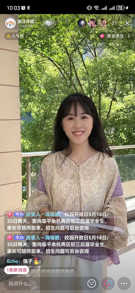 本次校園開放日學校抖音賬號“浙江開放大學臨平學院”進行現場實時直播。
