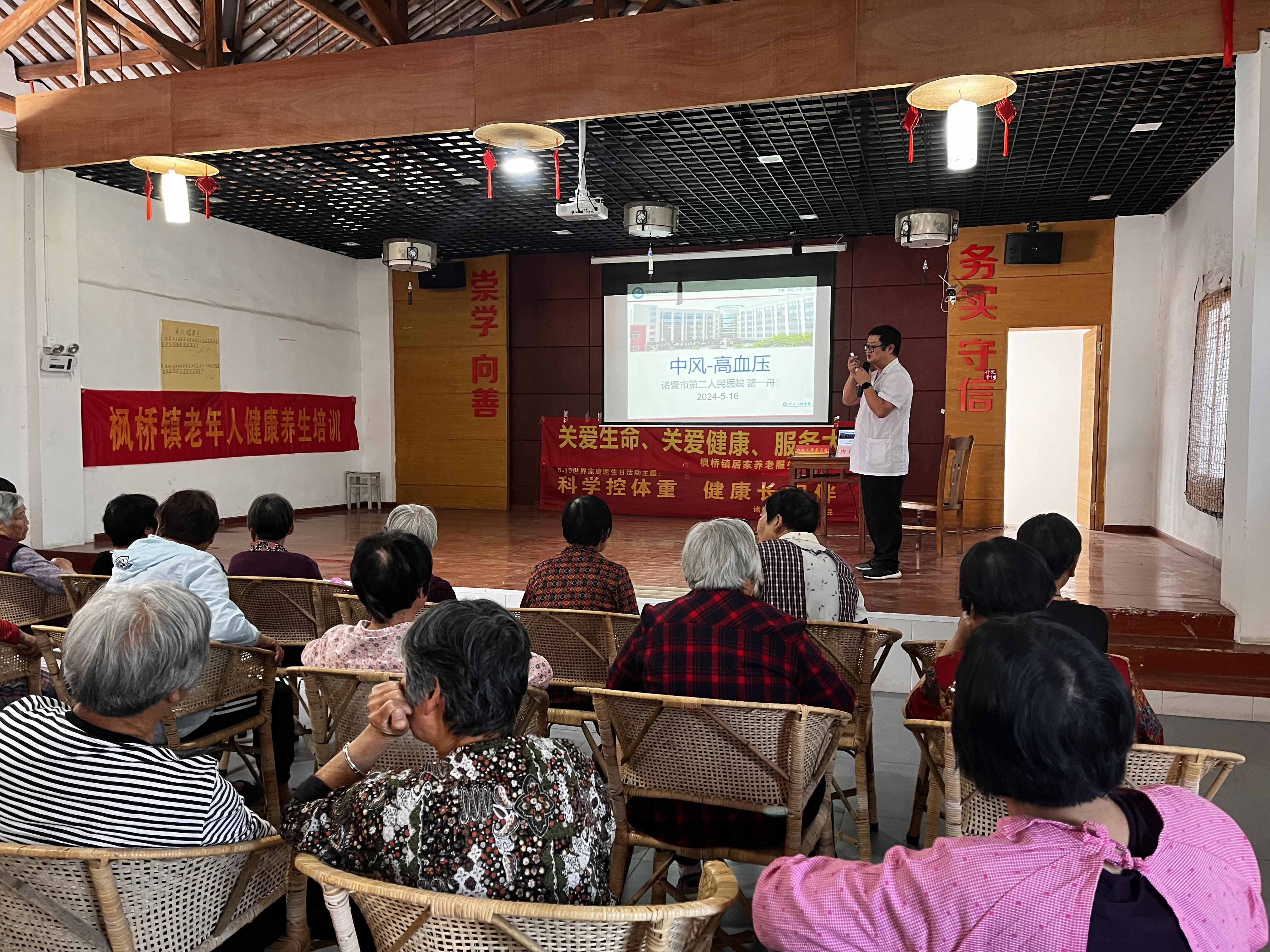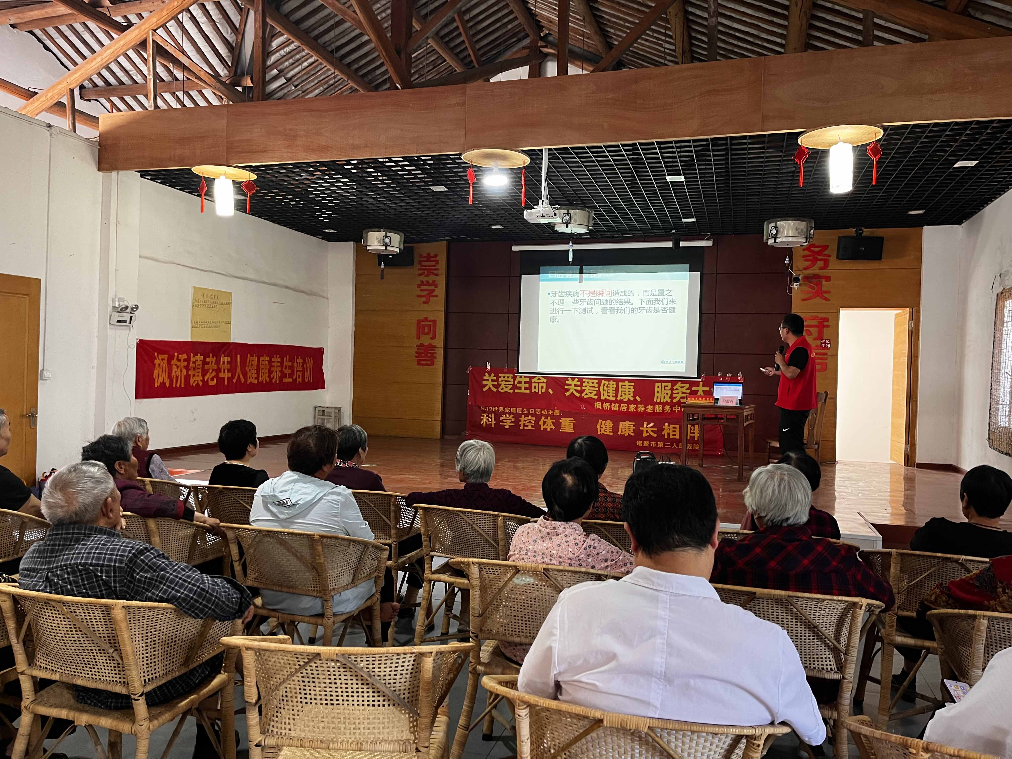 5月16日下午,諸暨市楓橋鎮(zhèn)社區(qū)教育學(xué)校邀請(qǐng)諸暨市第二人民醫(yī)院內(nèi)科主任駱一舟、口腔科副主任蔡國(guó)飛兩位專(zhuān)家來(lái)到楓橋鎮(zhèn)樓家社區(qū)文化禮堂,為老年人講解健康養(yǎng)生知識(shí)。