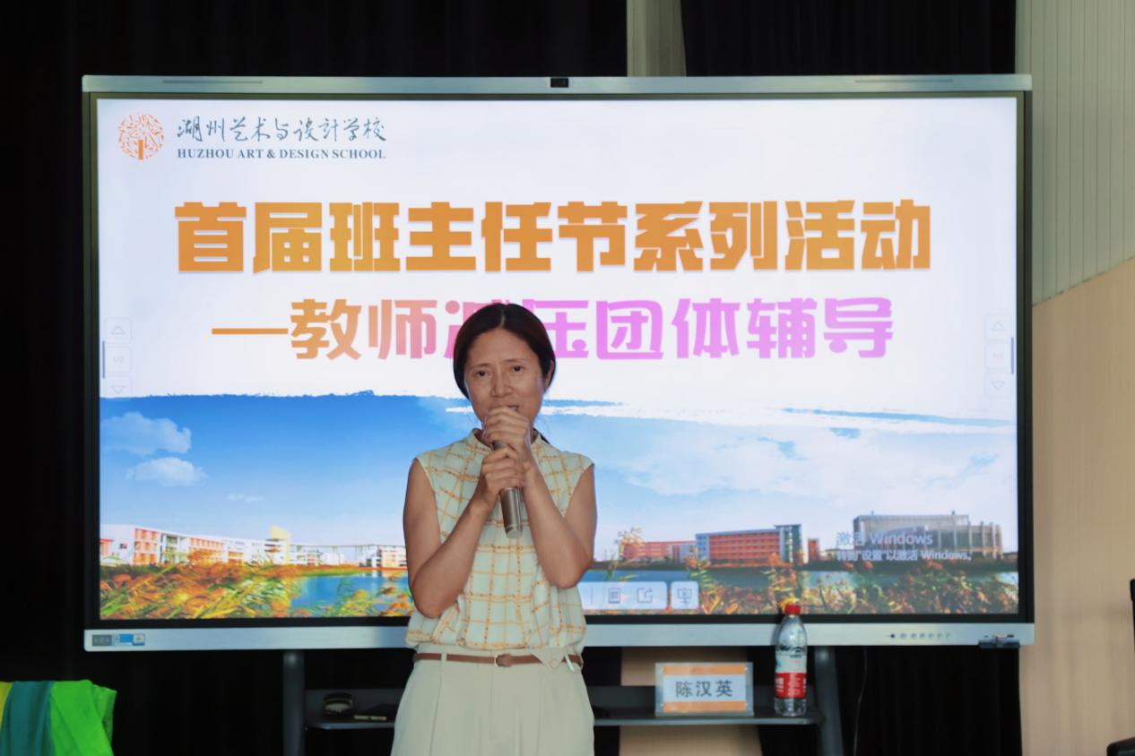 來自湖州師范學院的陳漢英教授以藝術療愈的形式幫助班主任們放松身心、釋放壓力。通過陳教授的引導,不同年齡的教師間形成互動,新班主任激發帶班熱情,老班主任傳授帶班經驗,形成了代際傳承的正向互動。此次活動給全體班主任釋放了工作壓力,帶來了全新的工作啟迪。