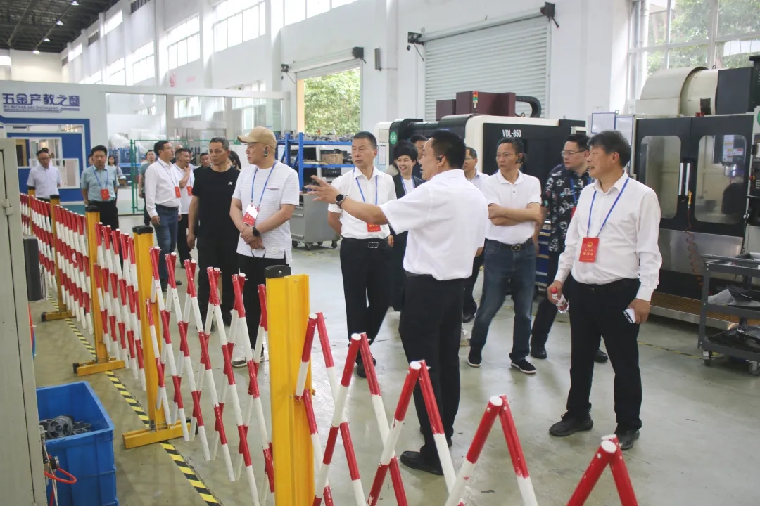 在東校區(qū),調(diào)研組參觀了學(xué)校產(chǎn)教融合大樓和模具產(chǎn)學(xué)研中心,了解學(xué)校在智能門業(yè)領(lǐng)域的教學(xué)設(shè)施和研究成果,以及在專業(yè)建設(shè)中廣泛滲透產(chǎn)教融合的情況。同時,在云上五金職校進(jìn)一步感受到“東遷西歸”項(xiàng)目為共同富裕帶來的實(shí)際成效。