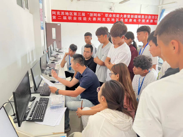 為進(jìn)一步提升援派工作質(zhì)量,深化援派工作成效,增進(jìn)湖州與阿克蘇地區(qū)在教學(xué)業(yè)務(wù)、教師培訓(xùn)、技能競(jìng)賽等方面的交流與溝通,擴(kuò)大兩地結(jié)對(duì)共富影響力,受阿克蘇地區(qū)人社局、阿克蘇地區(qū)中等職業(yè)技術(shù)學(xué)校及阿克蘇技師學(xué)院邀請(qǐng),浙江信息工程學(xué)校·湖州工程技師學(xué)院黨委委員、副校長(zhǎng)姚志恩,攜國(guó)家教學(xué)創(chuàng)新團(tuán)隊(duì)成員湯葉飛、司杰于5月10日至16日前往阿克蘇地區(qū)中等職業(yè)技術(shù)學(xué)校、阿克蘇技師學(xué)院、柯坪縣等地開(kāi)展交流指導(dǎo),同時(shí)擔(dān)任阿克蘇地區(qū)第三屆“浙阿杯”職業(yè)技能大賽電子技術(shù)賽項(xiàng)裁判長(zhǎng)一職,參與比賽執(zhí)裁工作。