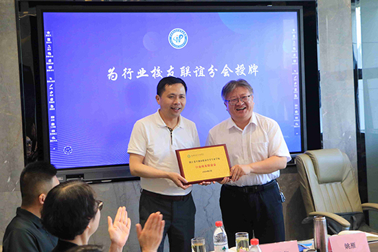 在與會人員的共同見證下,平湖市職業中專行業校友聯誼分會正式成立,校黨委書記、校長姚雁為行業校友聯誼分會授牌。