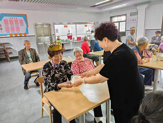 最高興的要算駱大媽、樓大媽與陳大爺了,當(dāng)日恰逢其生日,社區(qū)婦女主任高小英買來三個(gè)生日小蛋糕,一一切好,盛情送上生日祝福,還為壽星們戴上皇冠,三位壽星樂開了懷。眾人齊唱《生日快樂》。