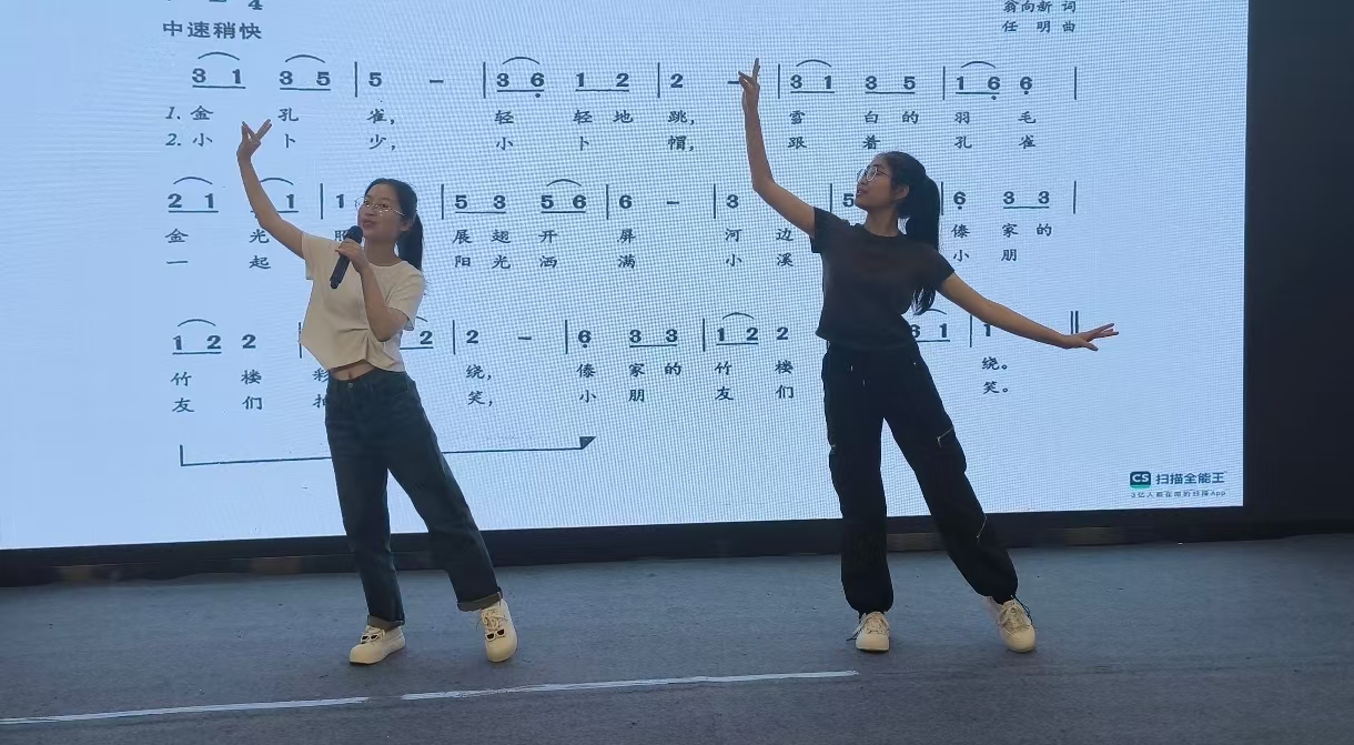 本次活動專業老師們不僅自己傾情授課,還帶領22幼兒保育趙翌岍、22幼兒保育勵燦燦兩名“小助手”。據悉,兩位同學剛剛結束了幼兒保育人人賽的抽測。當天,她們首次體驗課堂教學,勵燦燦帶領保育員們唱,趙翌岍帶領保育員們舞,竭盡所能輔助三位老師由簡入深地完成了教學任務。培訓后,趙翌岍感慨道:“通過此次活動,感覺自己變得更有自信了,克服了面對幾百個人上課講話的恐懼。”