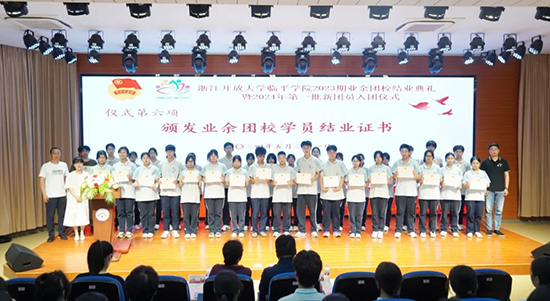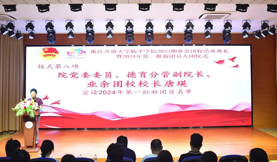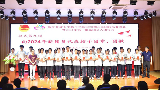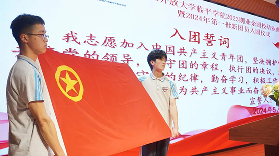 2024年是中華人民共和國成立75周年,也是五四運(yùn)動(dòng)105周年,更是貫徹黨的二十大精神的關(guān)鍵之年。為進(jìn)一步加強(qiáng)對(duì)學(xué)生的愛國主義教育,切實(shí)增強(qiáng)共青團(tuán)員的先進(jìn)性和光榮感,展現(xiàn)新時(shí)代青年朝氣蓬勃的精神面貌,5月21日中午,浙江開放大學(xué)臨平學(xué)院(臨平商貿(mào)職高)在清蓮廳小劇場隆重舉行2023期業(yè)余團(tuán)校結(jié)業(yè)典禮暨2024年第一批新團(tuán)員入團(tuán)儀式。