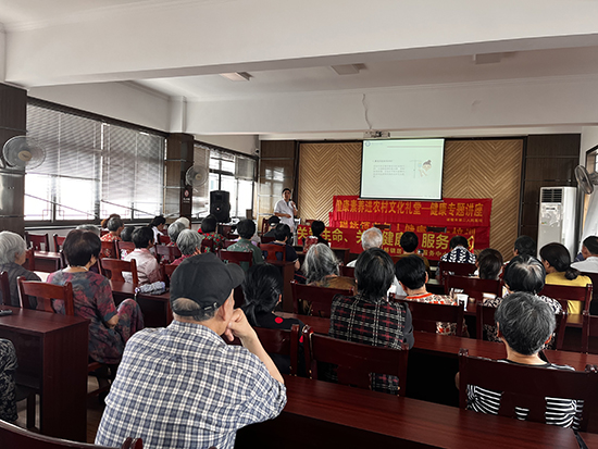 近日,諸暨市第二人民醫院針灸理療科副主任鐘強來到楓橋鎮鐘山社區文化禮堂給老年人上養生保健課。
