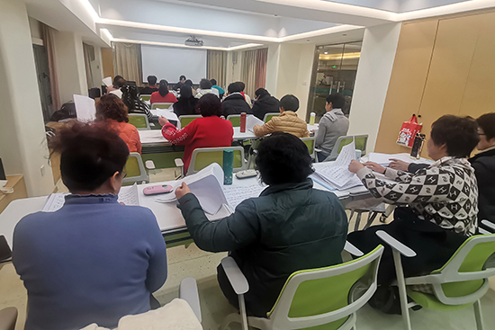 學校每學期開設9個長學制班即每年開設18個長學制班,年度在校學員約530人次。開設的課程有越劇、形體儀態、繪畫、模特、書法、養生、智能手機、舞蹈、基礎音樂(樂譜)、二胡、象棋等。短期培訓基本上每月安排一次,比如時事政治、老年人法律常識講座等等,每年約460人次參加短期培訓。鶴城街道老年學校課程設置如此豐富多彩,不禁讓人感慨老年學校的課程一點兒都不“老”。