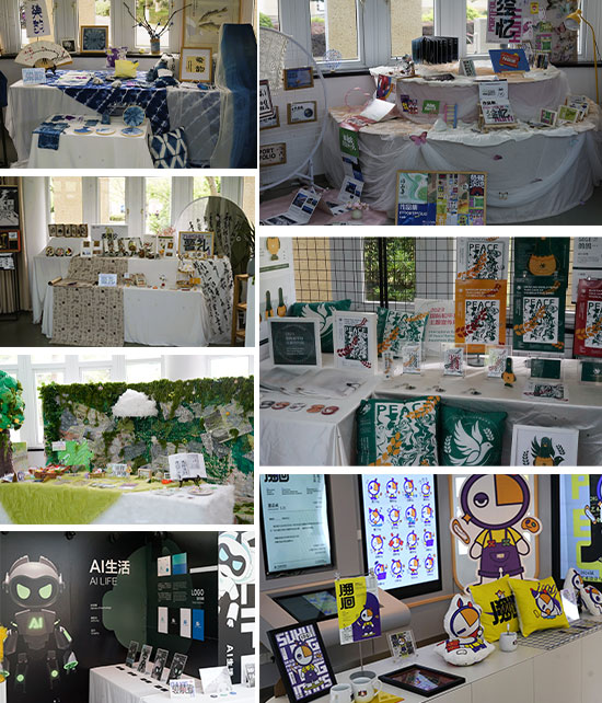 值得一提的是,本屆畢業展新增了VI組和草木染組,分別設計了3D立體的IP形象和宣揚了非遺文化——草木染。動漫手繪組的成員們不僅展示了手繪作品,還融入了板繪和繪本元素,設計出了兩個原創動漫人物及其同人周邊產品。