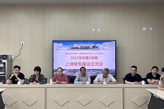 5月31日中午,一場別開生面的座談會在永康市職業技術學校產教融合大樓三樓云上五金職校會議室舉行。夏其明書記、呂興昌副校長及云上五金職校各科室主任親臨現場與上饒學生親切座談。