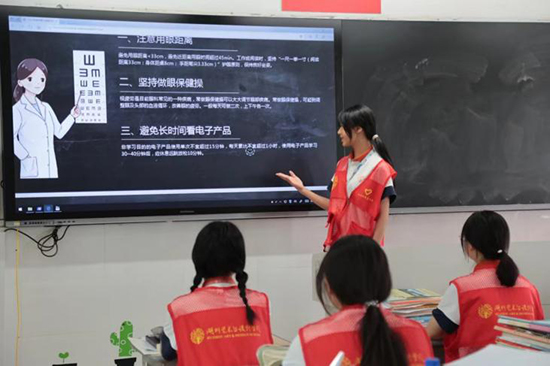 此外,還向學生們分發了預防近視的傳單。傳單上詳細列出了預防近視的注意事項和建議,如保持充足的睡眠、合理飲食、定期進行視力檢查等。學生們紛紛表示,要將這些知識帶入生活,加強自身的視力保護。(徐曹沖)