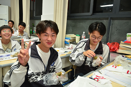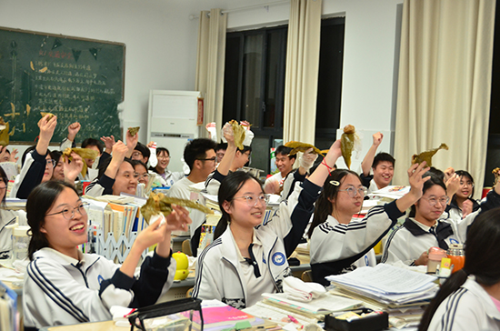 活動伊始,學(xué)校領(lǐng)導(dǎo)帶著滿滿的祝福和期待,走進(jìn)了每一個高三班級。他們親手將發(fā)糕、粽子送到每一位學(xué)子手中。糕粽寓意著“高中狀元”,寄托著學(xué)校對學(xué)子們金榜題名的美好祝愿。除了美食,學(xué)校還為每位高三學(xué)子準(zhǔn)備了兩雙特別的襪子,這些襪子上印有“金榜題名”“逢考必過”等字樣,寓意著學(xué)校對同學(xué)們的祝福和期望。學(xué)子們品嘗著美味的糕粽,臉上洋溢著幸福的笑容。