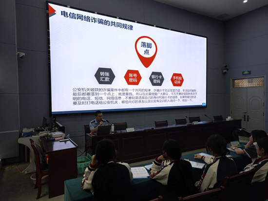活動邀請安吉縣公安局孝源派出所警官張連漢作主題為《電信網絡詐騙識別與防范》專題講座。他從電信網絡詐騙的共同特征講起,講到了電信詐騙的危害等內容,并將今年以來的電信詐騙案件等實際案例進行通報以起到警示作用。