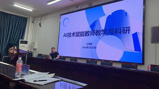 隨后,江德緒老師為學員帶來《AI技術賦能下教師教學與科研》的專題講座。他首先探討了AI在教育領域的意義,又介紹了多種前沿的AI輔助教學軟件。通過現場演示,江老師展示了AI如何助力教學資源開發、教學設計改進及教研工作。結合教學案例,他詳細講解了如何利用AI技術提升教學科研水平。講座不僅讓學員領略了AI技術的強大潛力,也激發了學員對AI在教育領域應用的思考。江老師的精彩講解為學員未來的教學與科研提供了寶貴的啟示。