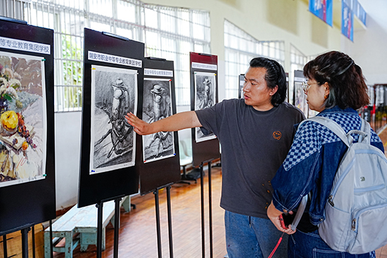 在交流研討環節,各校教師展示本校學生作品,大家各抒己見,毫無保留地分享了教學經驗與心得,共同探討“提升工美專業教學質量”“技能比賽”等議題,為中職工美教育的未來發展獻計獻策。通過交流研討,教師們不僅拓寬了教學思路,也增進了彼此之間的了解和友誼。