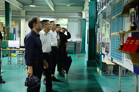 在校黨委書記王志勇的陪同下,浙江吉利控股集團有限公司產教融合總監祝萬云、校企合作大區經理張炎等一行參觀了新能源汽車運用與維修實訓室、汽車智慧實訓室、汽車機電維修名師工作室等實訓場地,了解了學校的實訓室建設情況和專業建設成果。